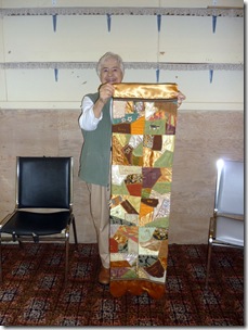 The owner of a fine furniture/drapery/reupholstering/decorating store was getting rid of his stuff (sounded like a yearly event). I WISH I had brought my camera!! He had a big truck backed up with rolls of fabric stacked high. Most of the rolls had between 1-3 metres on them…lovely drapery/upholstering fabrics…and he also had stacked rolls all down the right side of his driveway. ALL the fabric was being sold at $5 a metre (39inches) which I thought was a great price as this was VERY expensive stuff…here’s what I BOUGHT~