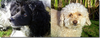 ReplyDeleteI love the one of Rylie when she doesn't want to go into the SPA ;) How funny that one looks so much like a poodle and the other so much like a cocker....too cute :)