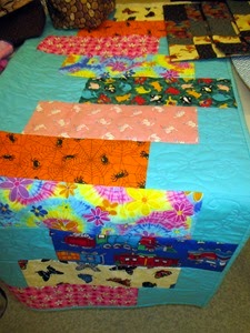 And yet another one of her scrap happy quilts! Would you believe that both these quilts were made from scraps from our Share Table!!
